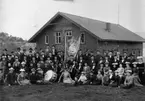 Skioptikonbild med motiv av två små barn, flicka och pojke, i Herrenberg. Bilden har förvarats i kartong märkt: Resan 1908. Herrenberg.