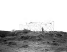 Vykort med motiv över ett husbygge, enligt handskriven text byggnation av Hallsta skola i Indal.