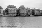 Skioptikonbild med motiv från Göteborg. Louis Enders jugendhus med adress Föreningsgatan 2 i Annedal under uppförande 1902. Bilden tagen från Västergatan. Bostadshusen på gatans båda sidor var byggda under andra hälften av 1800-talet och revs 1972-1973.