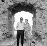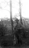 Här har han fotograferat uthusbyggnaderna på Kauparves södra part medan de ännu stod ute mot vägen. Kanske var han sur på sig själv att han missade ladugårdarna på grannparten när de revs året innan. Vi ser ekonomibyggnaderna från trädgården. Till vänster står en bulbod under faltak med en tillbyggd redskapsbod (?) på gaveln. Vad bulboden innehållit är oklart, men dubbelportarna under foderluckan tyder på att där har det varit vagnbod. Högra delen kan ha innehållit lammhus och andra utrymmen för smådjur.