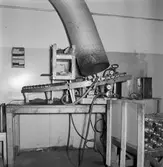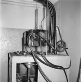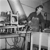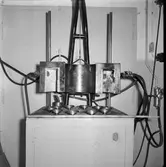 Trådsträckning 1925 vid banskillnaden i Ljusdal. Platsen kallades så därför att järnvägsspåren mot Bollnäs och Hudiksvall skildes där. De stående personerna är från vänster, Lindberg, Johan Thorell, okänd, Gustaf Nordahl, Johan Larsson ( Wia-Lasse), Sören Eriksson, Alfred Andersson och Clas Wennberg. Stående på knä framtill med lödugn är Hedberg.