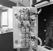 Dokumentation av Karlssons Klister. Panelen på Karlssons Klister maskinen. På panelen finns start och stopp, även omställning för manuell körning. Den första tuben som fylls kör manuellt för att se om strålen från munstycket kommer mitt i tuben.
