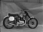 Från vänster en amerikansk stridsvagn Sherman i mitten en tysk Panter och till höger en svensk bandtraktor uppställda på garageområdet vid P 4 Skövde 1948.