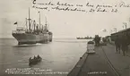 "Canada halar in till piren i Portland, Australien, 24 Feb. -22." "Wheat shipment 1922. M.S. Canada berthing at Portland. S.S. Baron Polwarth fully loaded at anchor. Andrews Photo."