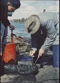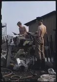 IF-båtliv; Man rengör förvaringsutrymme. Enl. givaren: "Rengöring inför tävling 1999."