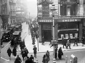 "Swedish Travel Bureau" på Coventry street i London. Resebyrån öppnades 1921 av Svenska Turisttrafikförbundet men övertogs 1924 av SJ Resebyrå. I samband med övertagandet så bytte resebyrån namn till "Swedish Travel Bureau" som den har på bilden.