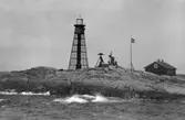 Text till bilden: "Grötö, den första fyren. 1959"